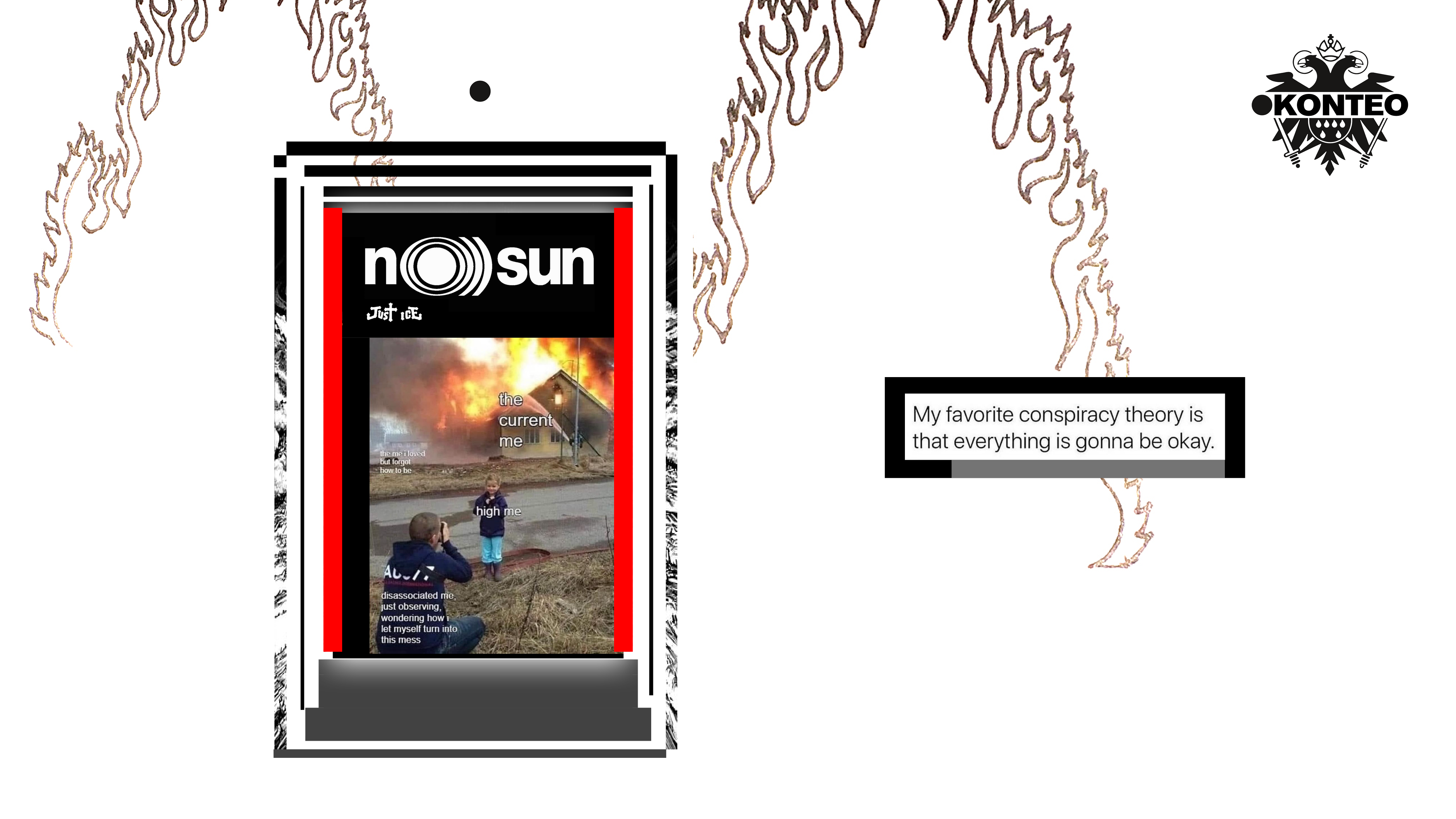 With a clearly outlining degree of irony, eeriness and dark humour, the works translate into a disillusioned, bitter lecture of our hopeless, doomed times. They also express a state of apprehension regarding summertime; once considered as an easy, light and unclouded season, summer turned into a menacing period of unpredictable, extreme weather.