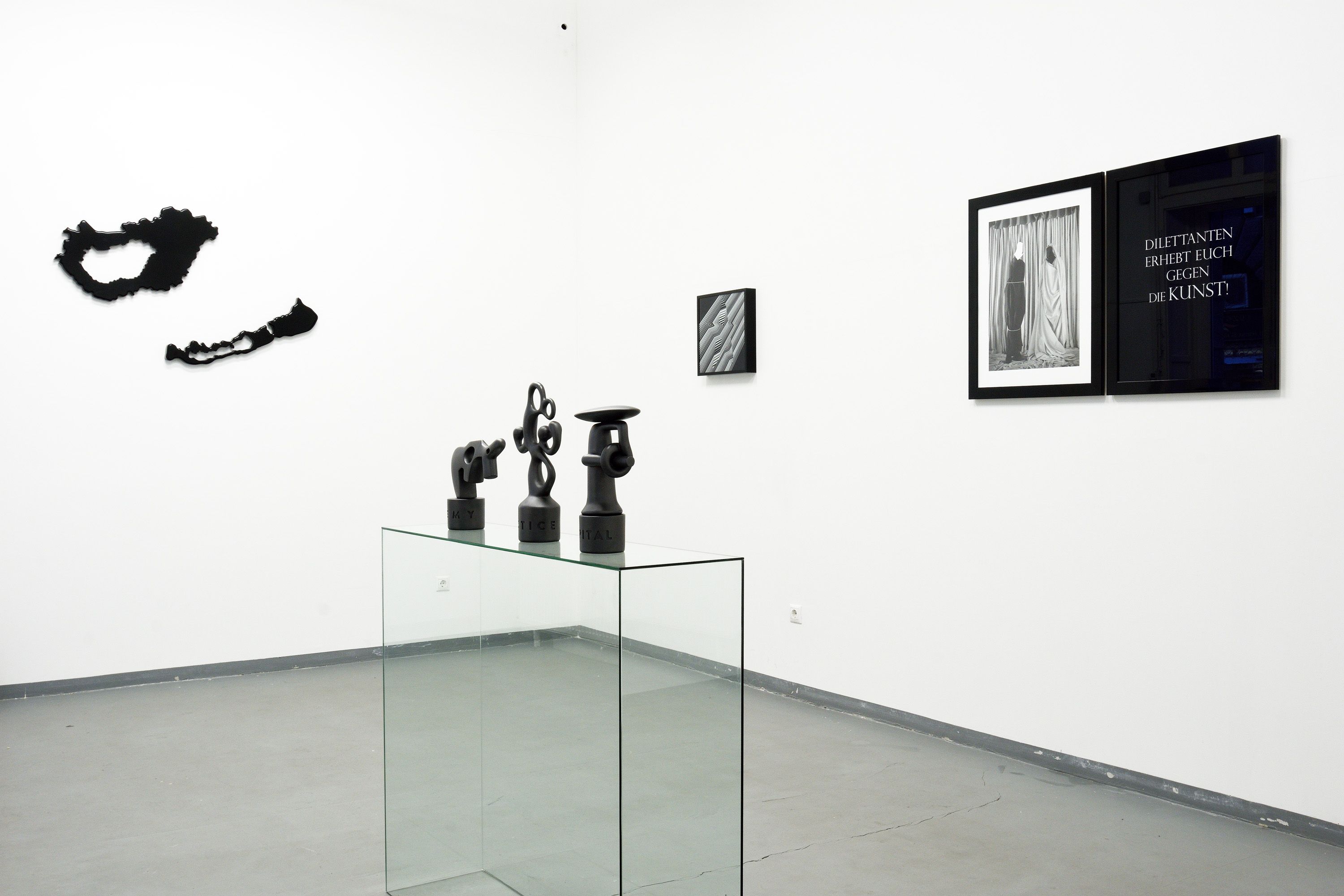 A kiállítás címét adó német mondat eredetileg az 1920-as berlini, első nemzetközi dada kiállításon egy falra függesztett táblán volt olvasható. Jelentése: A dilettánsok a művészet ellen lázítanak! Azonban Gerhes mostani műveit nem lehet egyszerűen az első világháború utáni, mozgalmi dadaizmushoz kötni, mivel nem a művészet és a fennálló rend vagy épp rendszertelenség ellen lázadó provokatív és nyíltan politikai művészet. Sokkal inkább az örök ellenzéki pozíciója, mely egyszersmind kritikai pozíció is, amely átveszi a tág értelemben vett politika bevett, és kisajátított reprezentációs mintáit – legyenek azok nyelviek vagy képiek –, és ezeket felhasználva majd átalakítva hozza létre e kondenzált jelentésű műveket.