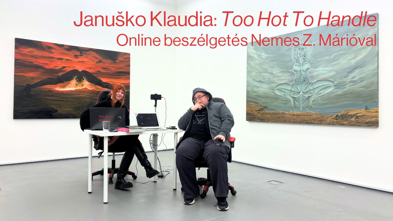 Januško Klaudia Too Hot to Handle című egyéni kiállítása a kortárs videójátékok uralkodó nőábrázolási mintáit és azok lehetséges kiberfeminista bírálatait ütközteti a romantika korszakának tájképfestészetéből merítkező képi világokkal. A kiállításon látható nagy léptékű olajvászon festmények tematikus bázisát egyfelől a művész tavaly ősszel Izlandon töltött alkotói ösztöndíja során gyűjtött tájélményei és azok dokumentációi, másfelől korábbi egyéni és csoportos kiállításokon, így például a 2023 nyarán a Her Body, Himself (Liget Galéria) keretében bemutatott műveinek központi témavilága, vagyis a maszkulin tekintet számára formált videójáték főhősnőket (és azok tágabb popkulturális megfelelőit: kiber-femme fatale, final girl, stb.) övező hiperszexualizált testpolitikák feltárása képezik.
